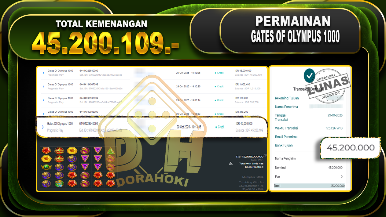 Bukti JP Gates Of Olympus 1000 – ucapkan selamat kepada user id selxxxxx atas kemenangan di Gates Of Olympus 1000 dengan total kemenangan Rp.45,200,109,- Yang pasti nya langsung LUNAS sesuai bukti ya bosku. Dorahoki nih bosku berapapun akan tetap kami bayar lunas ya bosku