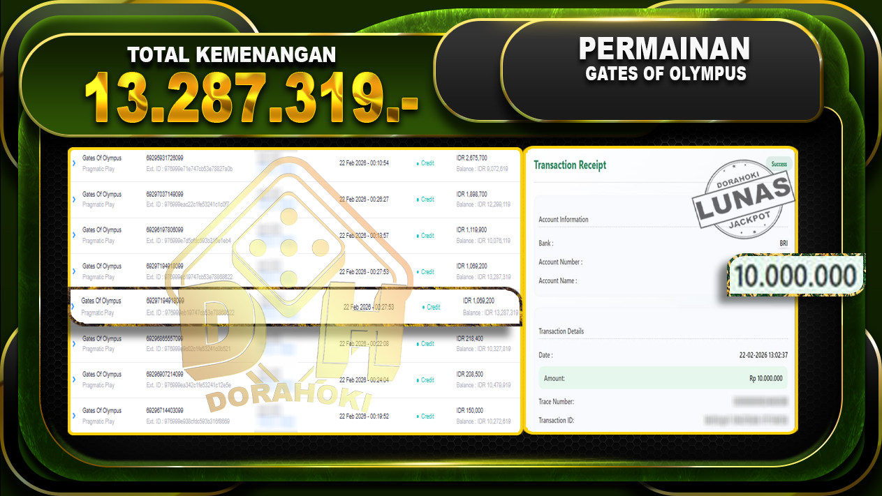 Bukti JP Gates Of Olympus – Selamat Kepada User ID : Salxxx atas kemenangan Gates Of Olympus Dengan Nominal Sebesar Rp 13.287.319,- . Yang pasti nya langsung LUNAS Sesuai Bukti.