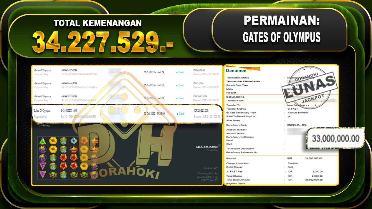 Bukti JP Gates Of Olympus – ucapkan selamat kepada user id elaxxxxxx atas kemenangan di Gates Of Olympus dengan total kemenangan Rp.34,227,529,- Yang pasti nya langsung LUNAS sesuai bukti ya bosku. Dorahoki nih bosku berapapun akan tetap kami bayar lunas ya bosku