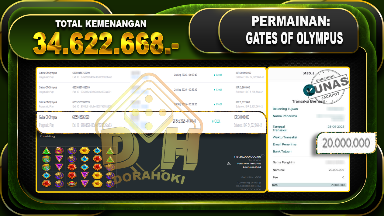 Bukti JP Gates Of Olympus – ucapkan selamat kepada user id rakxxxx atas kemenangan di Gates Of Olympus dengan total kemenangan Rp.34,622.668,- Yang pasti nya langsung LUNAS sesuai bukti ya bosku. Dorahoki nih bosku berapapun akan tetap kami bayar lunas ya bosku