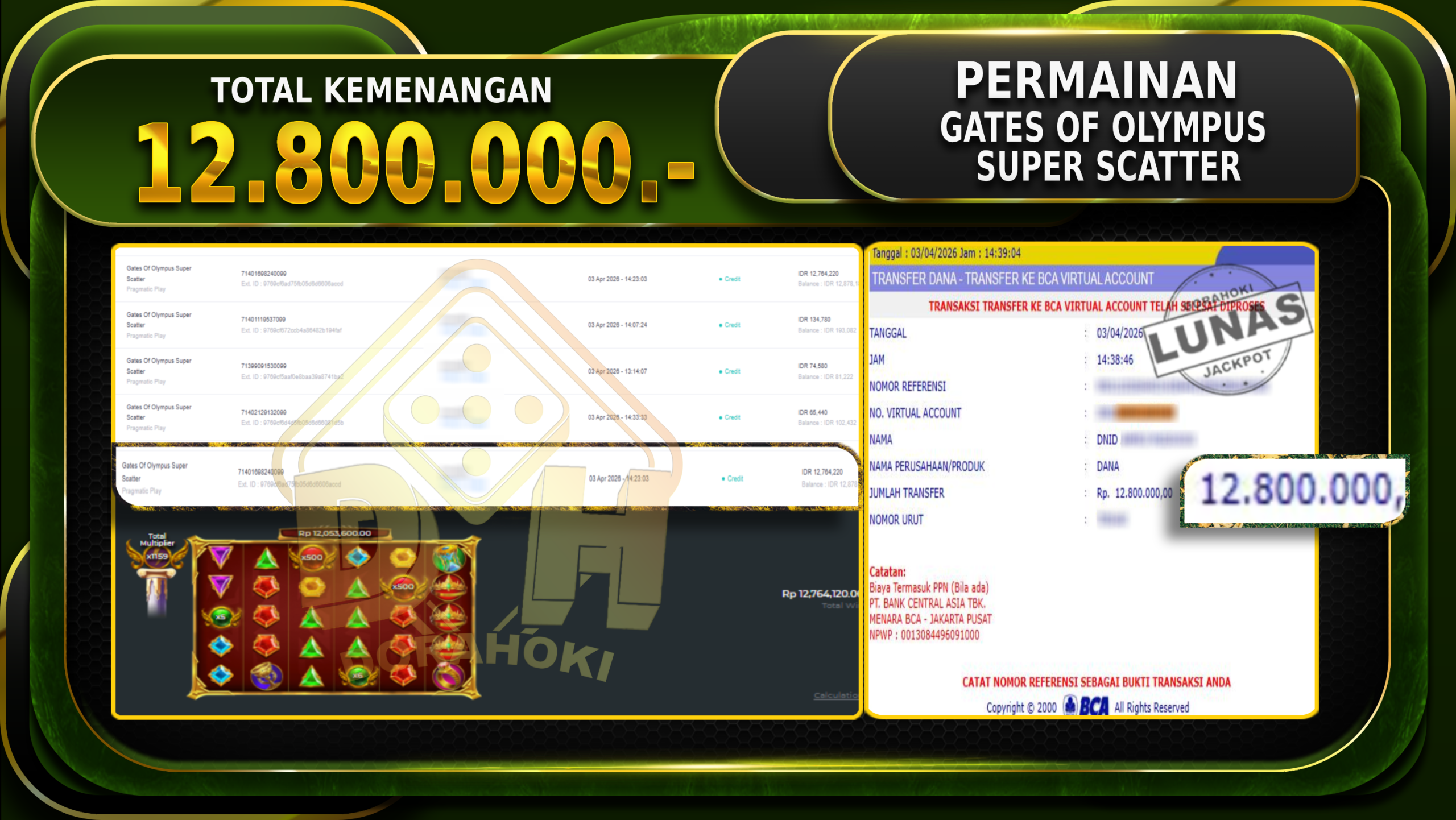 Bukti JP Gates Of Olympus Super Scatter – Selamat Kepada user ID : Ahmxxxx atas kemenangan Gates Of Olympus Super Scatter Dengan Nominal Sebesar Rp.12.800.000,- Yang pasti nya langsung LUNAS Sesuai Bukti.