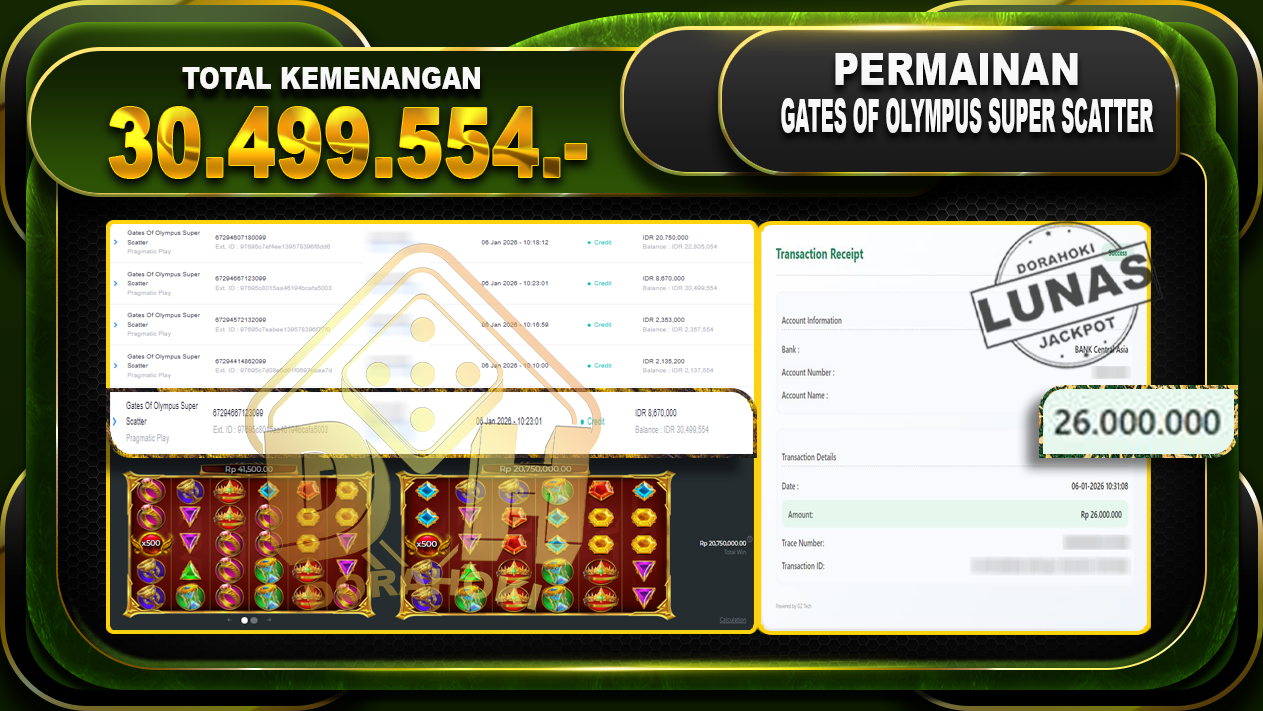 Bukti JP Gates Of Olympus Super Scatter – ucapkan selamat kepada user id marsxxxxx atas kemenangan di Gates Of Olympus Super Scatter dengan total kemenangan Rp.30.499.544,- Yang pasti nya langsung LUNAS sesuai bukti ya bosku. Dorahoki nih bosku berapapun akan tetap kami bayar lunas ya bosku