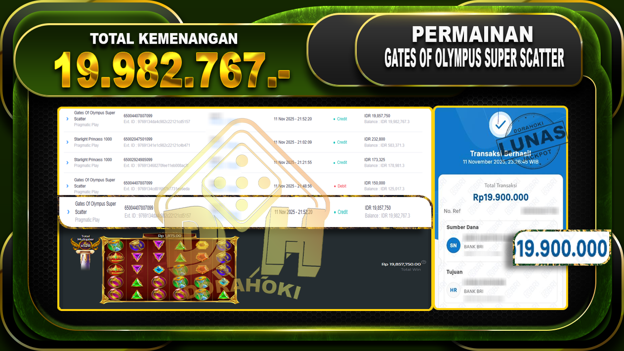 Bukti JP Gates Of Olympus Super Scatter – ucapkan selamat kepada user id stexxx atas kemenangan di Gates Of Olympus Super Scatter dengan total kemenangan Rp.19.982.767,- Yang pasti nya langsung LUNAS sesuai bukti ya bosku. Dorahoki nih bosku berapapun akan tetap kami bayar lunas ya bosku