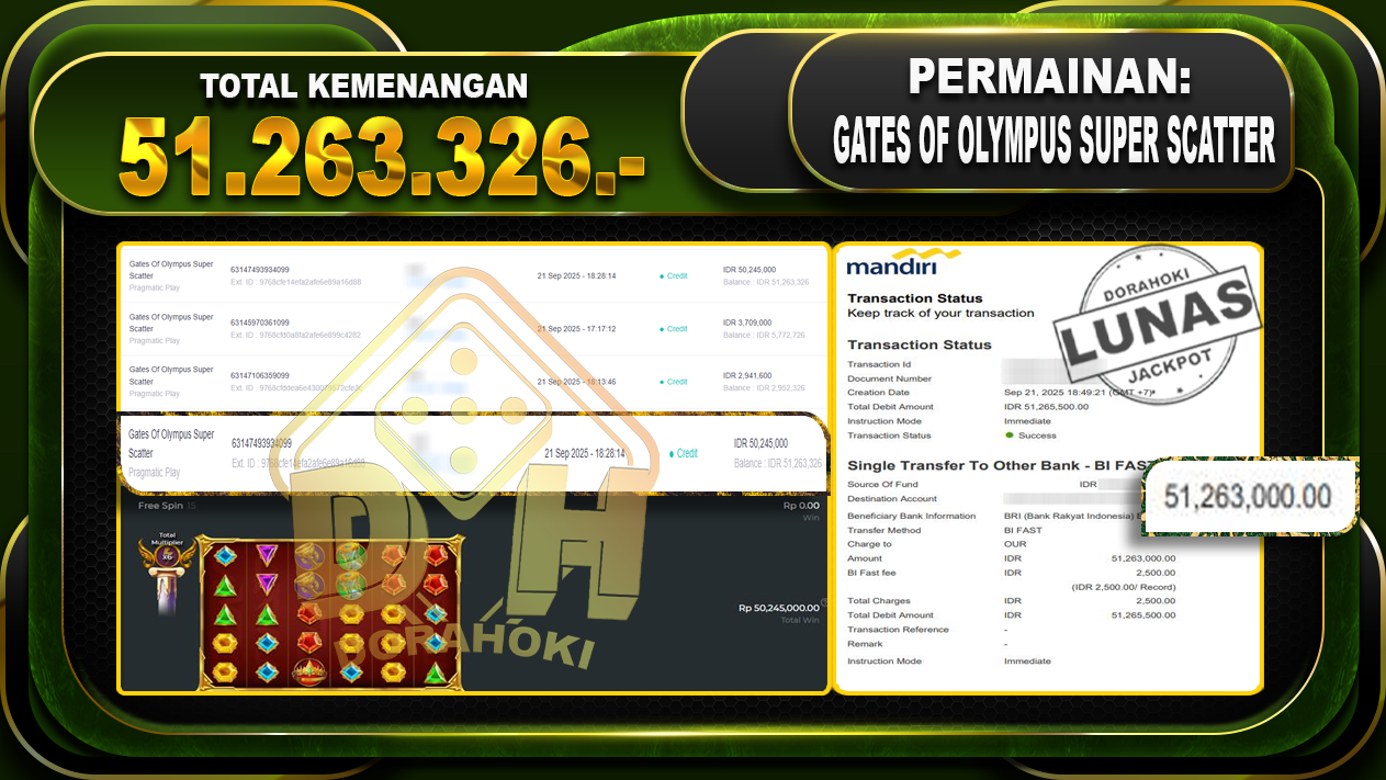 Bukti JP Gates Of Olympus Super Scatter – ucapkan selamat kepada user id iixxx atas kemenangan di Gates Of Olympus Super Scatter dengan total kemenangan Rp.51.263.326,- Yang pasti nya langsung LUNAS sesuai bukti ya bosku. Dorahoki nih bosku berapapun akan tetap kami bayar lunas ya bosku