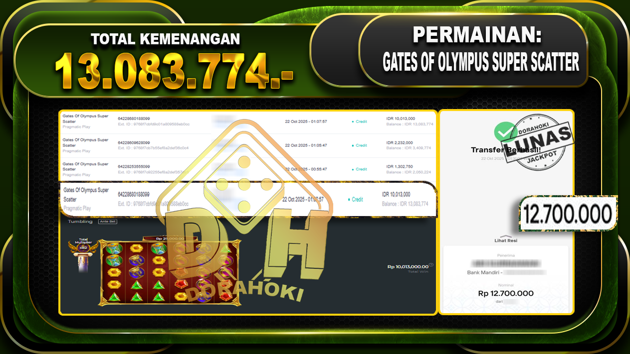 Bukti JP Gates Of Olympus Super Scatter – ucapkan selamat kepada user id braxxxxxx atas kemenangan di Gates Of Olympus Super Scatter dengan total kemenangan Rp.13.083.774,- Yang pasti nya langsung LUNAS sesuai bukti ya bosku. Dorahoki nih bosku berapapun akan tetap kami bayar lunas ya bosku