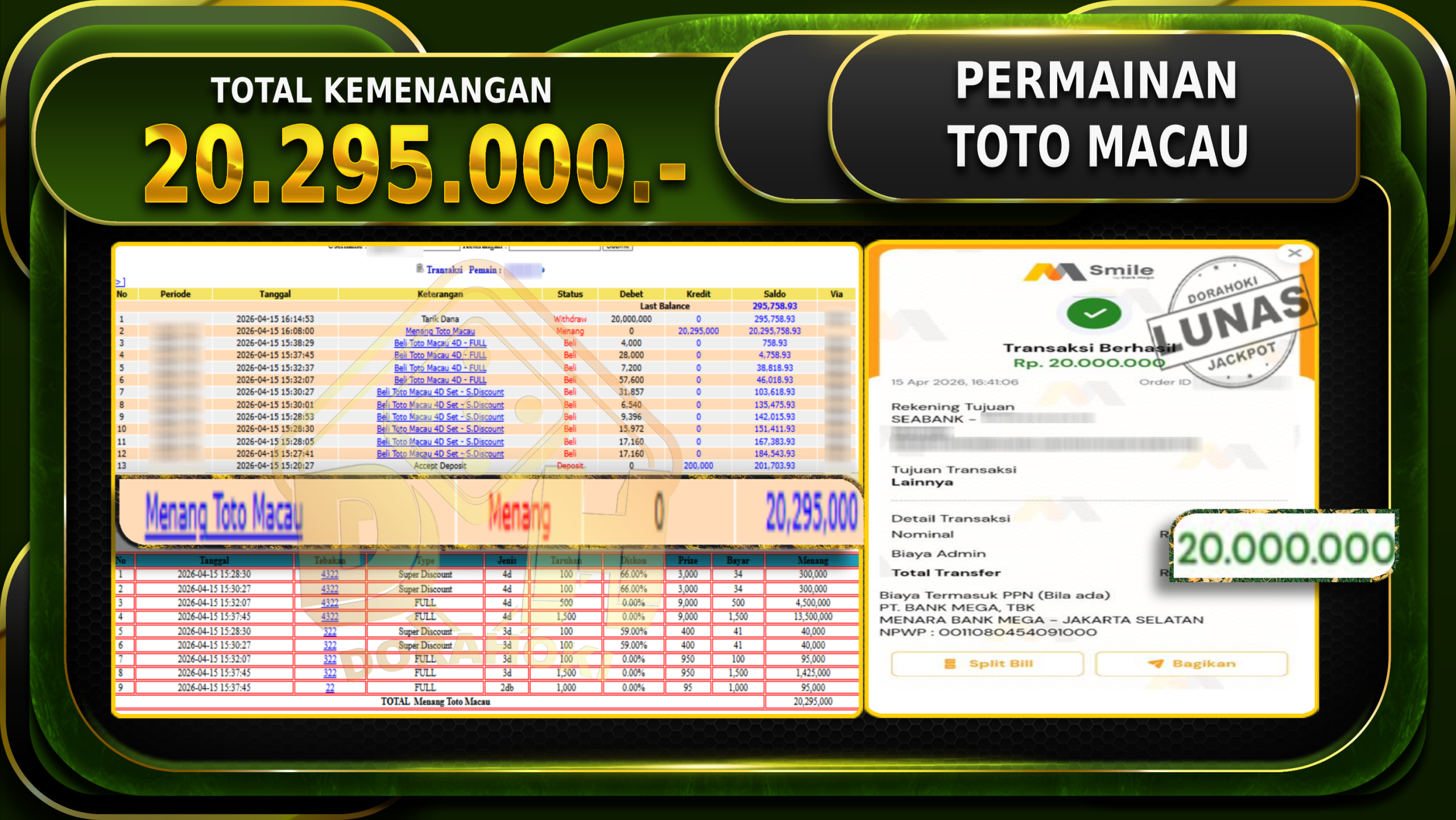 Bukti JP KingKong 4D – Yang kami berikan ini sah dan real tanpa di rekayasa bosku dan hanya bertujuan untuk meningkatkan kepercayaan member kami dan memberikan kenyamanan saat bermain jadi bosku tidak perlu khawatir MENANG BERAPAPUN PASTI KAMI BAYAR LUNAS!!