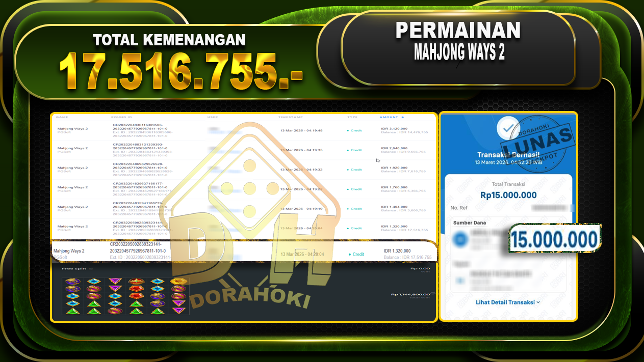 Bukti JP Mahjong Ways 2 – Selamat Kepada User id Sihxxx atas kemenangan Mahjong Ways 2 Dengan Nominal Sebesar Rp 17.516.755,- . Yang pasti nya langsung LUNAS Sesuai Bukti.