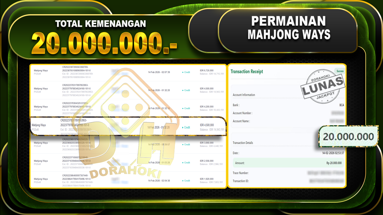 Mahjong Ways 2 – DORAHOKI 14 Februari 2026