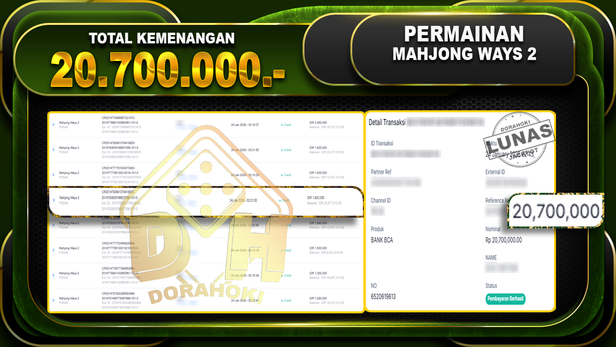 Bukti JP Mahjong Ways 2 – Selamat Kepada User id bawxxx atas kemenangan Mahjong Ways 2 Dengan Nominal Sebesar Rp 20.700.000,- . Yang pasti nya langsung LUNAS Sesuai Bukti.