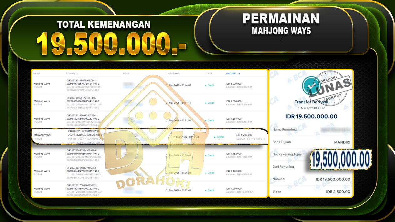 Bukti JP Mahjong Ways – Selamat Kepada User id Harxxx atas kemenangan Mahjong Ways Dengan Nominal Sebesar Rp 19.500.000,- . Yang pasti nya langsung LUNAS Sesuai Bukti.