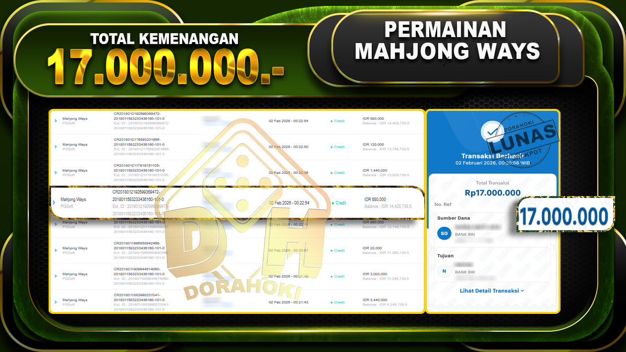 Bukti JP Mahjong Ways – Selamat Kepada User ID : thexxxxx atas kemenangan di Mahjong Ways Dengan Nominal Sebesar Rp.17.000.000,- Yang pasti nya langsung LUNAS Sesuai Bukti.