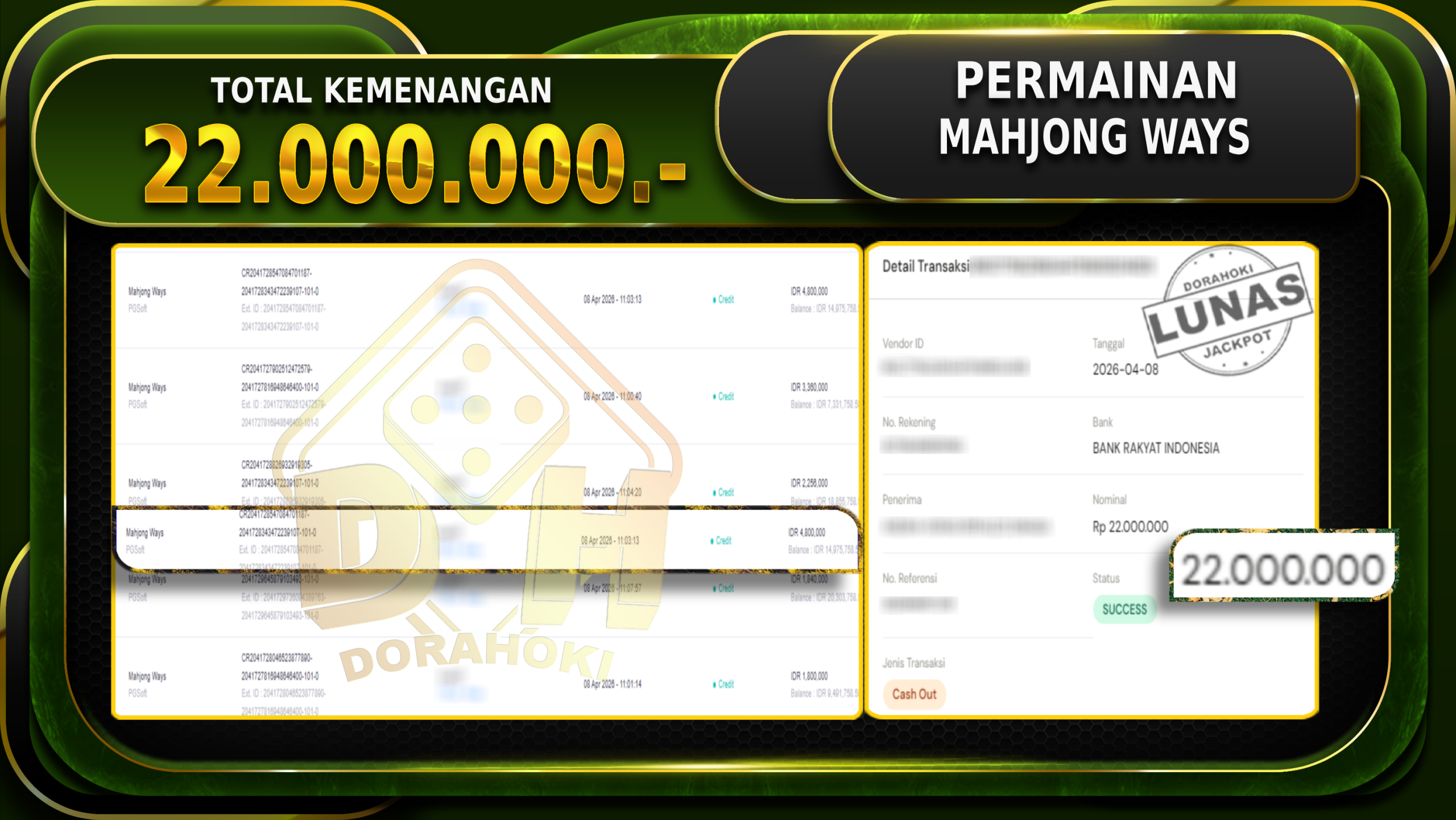 Bukti JP Mahjong Ways – Selamat Kepada User id Sinxxx atas kemenangan Mahjong Ways Dengan Nominal Sebesar Rp 22.000.000,- . Yang pasti nya langsung LUNAS Sesuai Bukti.
