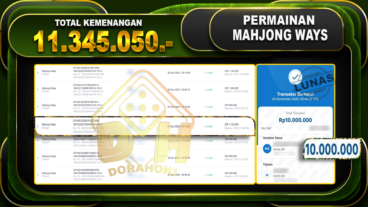 Bukti JP Mahjong Ways – ucapkan selamat kepada user id karxxx atas kemenangan di Mahjong Ways dengan total kemenangan Rp.11.345.050,- Yang pasti nya langsung LUNAS sesuai bukti ya bosku. Dorahoki nih bosku berapapun akan tetap kami bayar lunas ya bosku