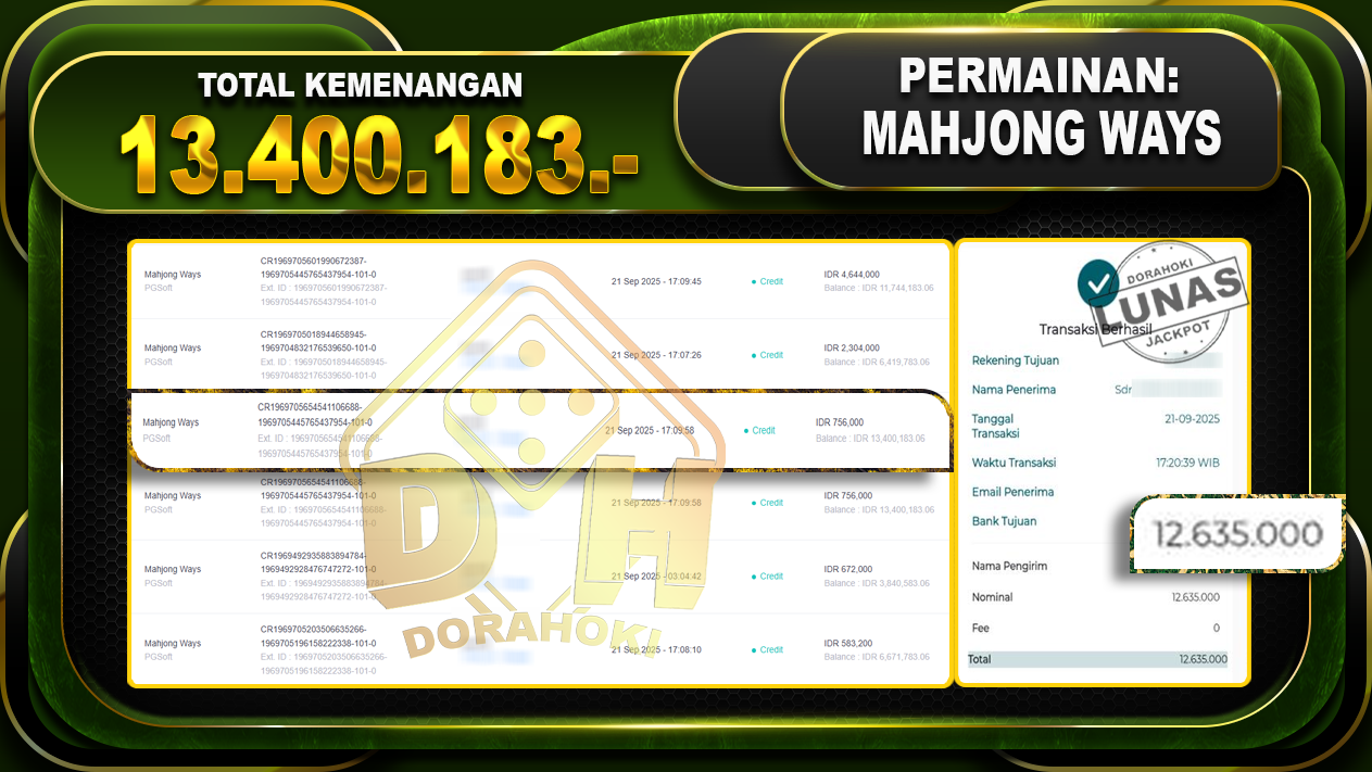 Bukti JP Mahjong Ways – ucapkan selamat kepada user id jawxxxx atas kemenangan di Mahjong Ways dengan total kemenangan Rp.13.400.183,- Yang pasti nya langsung LUNAS sesuai bukti ya bosku. Dorahoki nih bosku berapapun akan tetap kami bayar lunas ya bosku