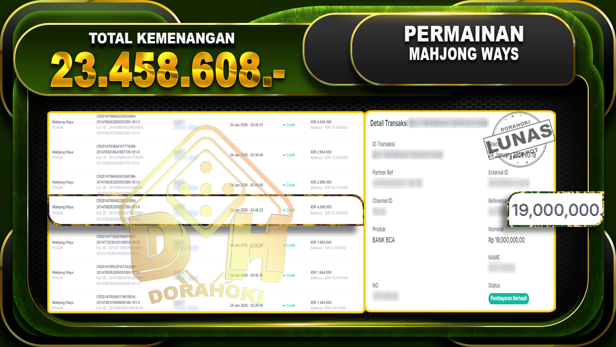 Bukti JP Mahjong Ways – Selamat Kepada User id hebxxxxx atas kemenangan di Mahjong Ways Dengan Nominal Sebesar Rp.24.569.124,- Yang pasti nya langsung LUNAS Sesuai Bukti.