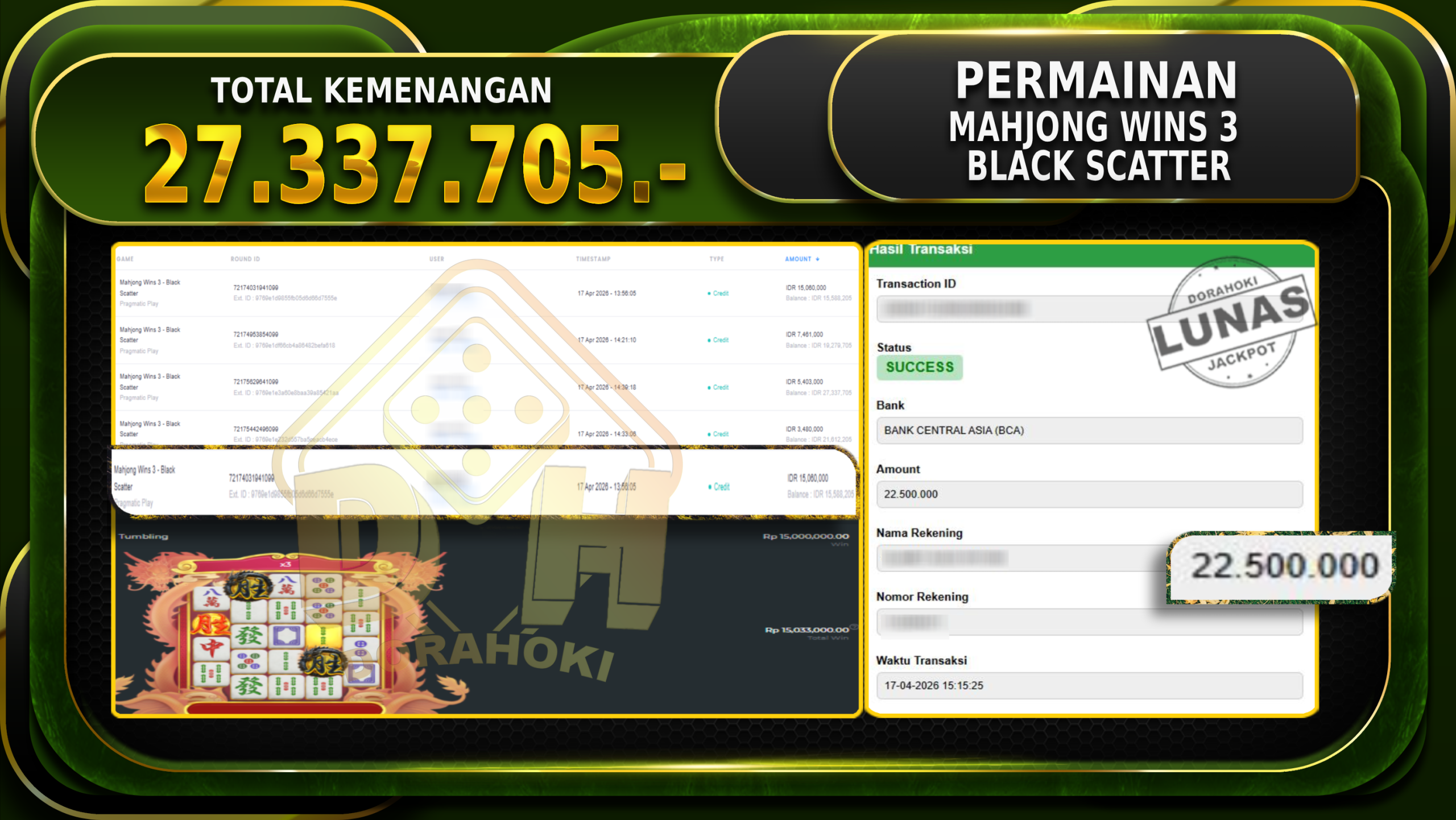 Bukti JP Mahjong Ways – ucapkan selamat kepada user id Abaxxx atas kemenangan di Mahjong Ways dengan total kemenangan Rp.31.000.000,- . Yang pasti nya langsung LUNAS sesuai bukti ya bosku. Dorahoki nih bosku berapapun akan tetap kami bayar lunas ya bosku.