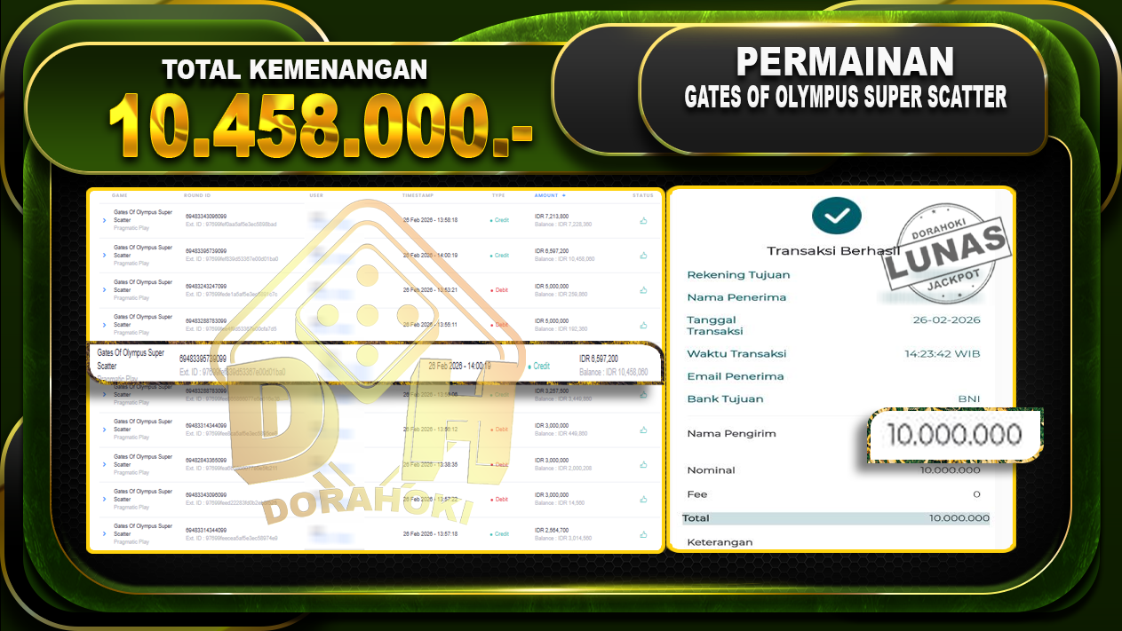 DORAHOKI NIH BOSKU! MENANG BERAPAPUN PASTI KAMI BAYAR LUNAS!!