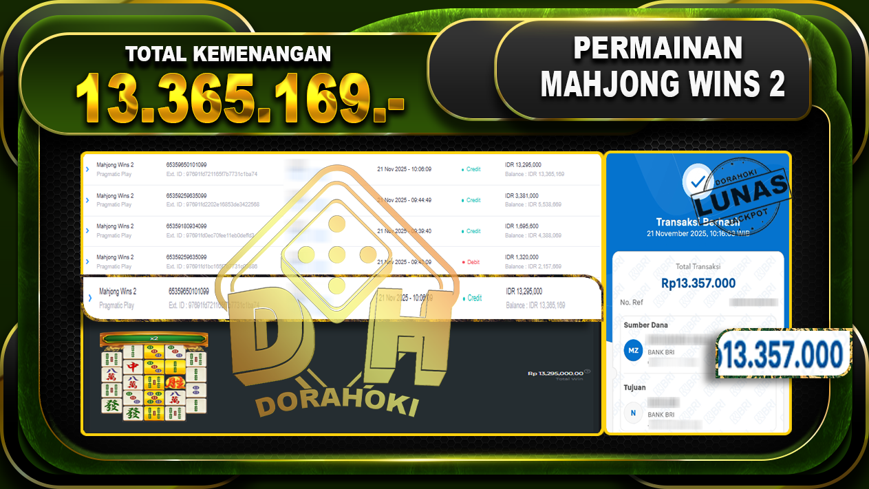 Bukti JP Mahjong Wins 2 – ucapkan selamat kepada user id unnxxxx atas kemenangan di Mahjong Wins 2 dengan total kemenangan Rp.13.365.169,- Yang pasti nya langsung LUNAS sesuai bukti ya bosku. Dorahoki nih bosku berapapun akan tetap kami bayar lunas ya bosku.
