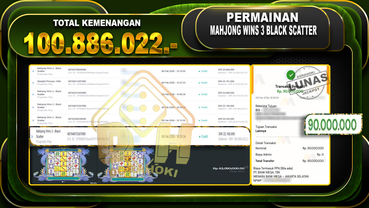 Bukti JP MAHJONG WINS 3 BLACK SCATTER – Selamat Kepada User ID : jitxxx atas kemenangan MAHJONG WINS 3 BLACK SCATTER Dengan Nominal Sebesar Rp.100.886.022- . Yang pasti nya langsung LUNAS Sesuai Bukti.