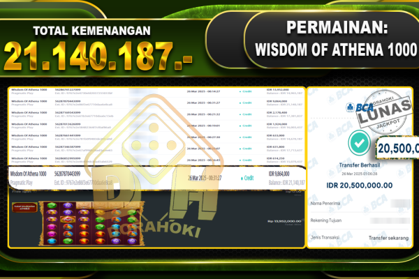 BuktiJP Wisdom Of Athena – Kami ucapkan selamat kepada user id Amoxxxatas kemenangan di Wisdom Of Athena dengan total kemenangan Rp.21,140,187,- . Yang pasti nya langsung LUNAS sesuai bukti ya bosku. Dorahoki nih bosku berapapun akan tetap kami bayar lunas ya bosku. Kami mengucapkan Terima Kasih telah mempercayakan DORAHOKI sebagai Bandar Online pilihan dalam bermain…