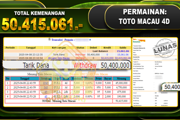 Bukti JP SYDNEY – ucapkan selamat kepada user id Yusxxx atas kemenangan di SYDNEY dengan total kemenangan Rp.11.020.000,- . Yang pasti nya langsung LUNAS sesuai bukti ya bosku. Dorahoki nih bosku berapapun akan tetap kami bayar lunas ya bosku.