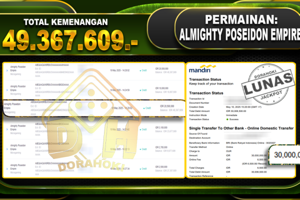 Bukti JP TOGEL HONGKONG – ucapkan selamat kepada user id Ronxxx atas kemenangan di TOGEL HONGKONG dengan total kemenangan Rp.10.000.000,- . Yang pasti nya langsung LUNAS sesuai bukti ya bosku. Dorahoki nih bosku berapapun akan tetap kami bayar lunas ya bosku. Kami mengucapkan Terima Kasih telah mempercayakan DORAHOKI sebagai Bandar Online pilihan dalam bermain judi…