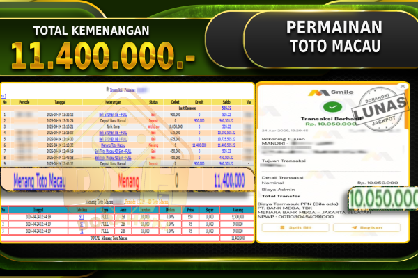Bukti JP TOGEL Toto Macau 4D – ucapkan selamat kepada user id Aonxxx atas kemenangan di TOGEL Toto Macau 4D dengan total kemenangan Rp.66.500.000,- Yang pasti nya langsung LUNAS sesuai bukti ya bosku. Dorahoki nih bosku berapapun akan tetap kami bayar lunas ya bosku.F