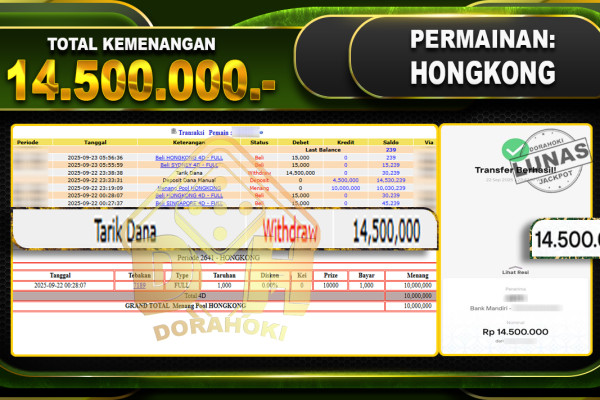 Bukti JP 12D Thunder – ucapkan selamat kepada user id Jpterxxx atas kemenangan di 12D Thunder dengan total kemenangan Rp.11.501.000,- . Yang pasti nya langsung LUNAS sesuai bukti ya bosku. Dorahoki nih bosku berapapun akan tetap kami bayar lunas ya bosku. Kami mengucapkan Terima Kasih telah mempercayakan DORAHOKI sebagai Bandar Online pilihan dalam bermain judi online….