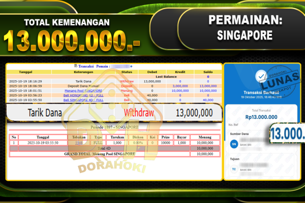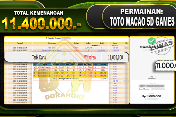 Bukti JP TOGEL HONGKONG – ucapkan selamat kepada user id Kasihxxx atas kemenangan di TOGEL HONGKONG dengan total kemenangan Rp.11.400.000,- . Yang pasti nya langsung LUNAS sesuai bukti ya bosku. Dorahoki nih bosku berapapun akan tetap kami bayar lunas ya bosku. Kami mengucapkan Terima Kasih telah mempercayakan DORAHOKI sebagai Bandar Online pilihan dalam bermain judi online….