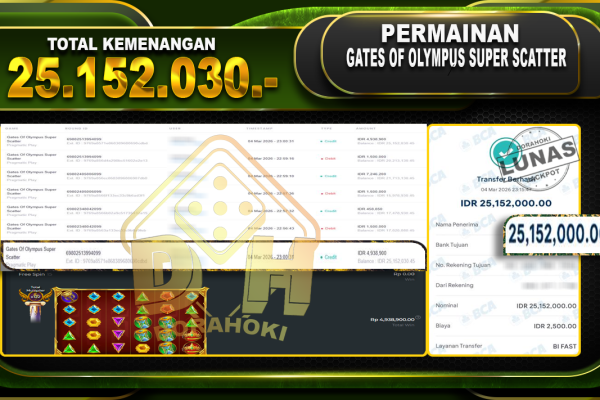 Bukti JP Gates Of Olympus Super Scatter – Selamat Kepada user ID : Kebxxxx atas kemenangan Gates Of Olympus Super Scatter Dengan Nominal Sebesar Rp.25.152.030,- Yang pasti nya langsung LUNAS Sesuai Bukti. Kemenangan Berapapun Situs DoraHoki Akan Membayar Lunas ya