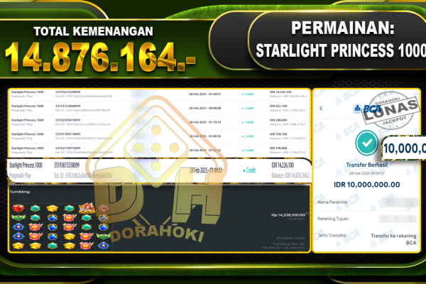 Bukti JP Gates Of Olympus 1000 – ucapkan selamat kepada user id Maguxxx atas kemenangan di Gates Of Olympus 1000 dengan total kemenangan Rp.12.000.000,- . Yang pasti nya langsung LUNAS sesuai bukti ya bosku. Dorahoki nih bosku berapapun akan tetap kami bayar lunas ya bosku. Kami mengucapkan Terima Kasih telah mempercayakan DORAHOKI sebagai Bandar Online pilihan…