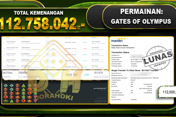 Bukti JP GATES OF OLYMPUS – ucapkan selamat kepada user id Prixxx atas kemenangan di GATES OF OLYMPUS 1000 dengan total kemenangan Rp.112.758.042,- . Yang pasti nya langsung LUNAS sesuai bukti ya bosku. Dorahoki nih bosku berapapun akan tetap kami bayar lunas ya bosku.