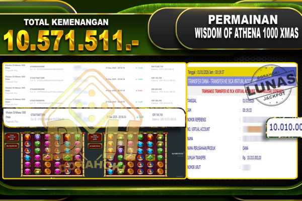 Bukti JP Wisdom Of Athena 1000 Xmas – ucapkan selamat kepada user id cucxxxxx atas kemenangan di Wisdom Of Athena 1000 Xmas dengan total kemenangan Rp.10.571.511,- Yang pasti nya langsung LUNAS sesuai bukti ya bosku. Dorahoki nih bosku berapapun akan tetap kami bayar lunas ya bosku
