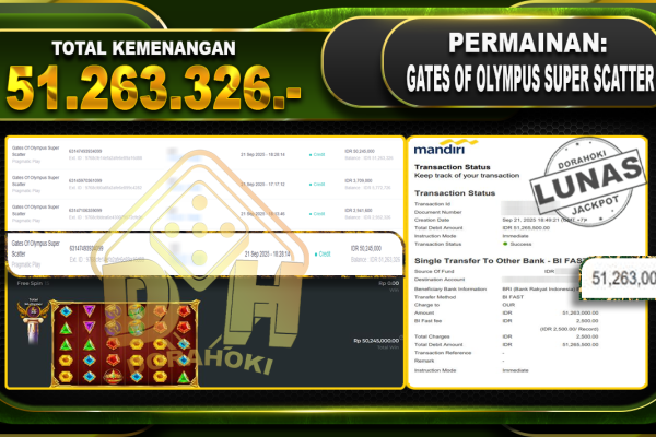 Bukti JP Gates Of Olympus 1000 – ucapkan selamat kepada user id katxxxx atas kemenangan di Gates Of Olympus 1000 dengan total kemenangan Rp.23.906.319,- Yang pasti nya langsung LUNAS sesuai bukti ya bosku. Dorahoki nih bosku berapapun akan tetap kami bayar lunas ya bosku