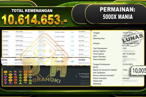 Bukti JP 15000X MANIA – ucapkan selamat kepada user id berkaxxx atas kemenangan di  15000X MANIA dengan total kemenangan Rp.10.614.453,- . Yang pasti nya langsung LUNAS sesuai bukti ya bosku. Dorahoki nih bosku berapapun akan tetap kami bayar lunas ya bosku. Kami mengucapkan Terima Kasih telah mempercayakan DORAHOKI sebagai Bandar Online pilihan dalam bermain judi online….