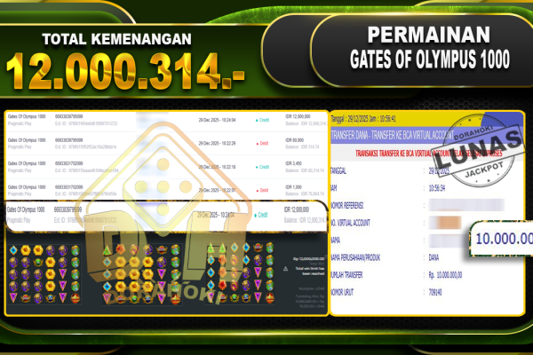Bukti JP Gates Of Olympus 1000 – ucapkan selamat kepada user id ziexxx atas kemenangan di  Gates Of Olympus 1000 dengan total kemenangan Rp.12.000.314,- Yang pasti nya langsung LUNAS sesuai bukti ya bosku. Dorahoki nih bosku berapapun akan tetap kami bayar lunas ya bosku