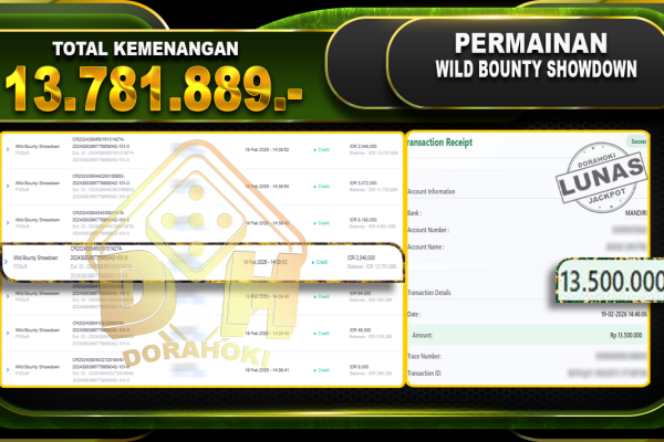 Bukti JP Wild Bounty Showdown – Selamat Kepada User id Supxxx atas kemenangan Wild Bounty Showdown Dengan Nominal Sebesar Rp.13.781.889,- Yang pasti nya langsung LUNAS Sesuai Bukti. Kemenangan Berapapun Situs DoraHoki Akan Membayar Lunas yah