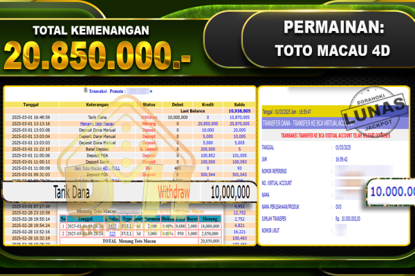 Bukti JP BACCARAT 3 GAMES – ucapkan selamat kepada user id WaHxxx atas kemenangan di BACCARAT 3 GAMES dengan total kemenangan Rp.10.300.000,- . Yang pasti nya langsung LUNAS sesuai bukti ya bosku. Dorahoki nih bosku berapapun akan tetap kami bayar lunas ya bosku.