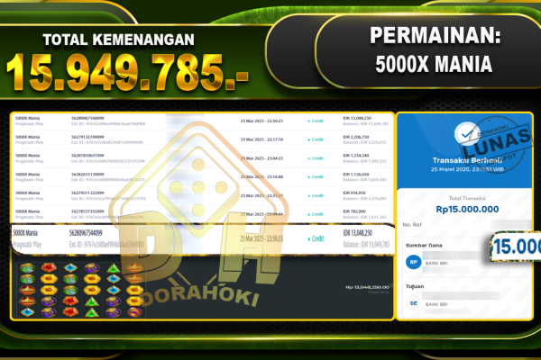 Bukti JP MAHJONG WINS 2 – ucapkan selamat kepada user id Doixxx atas kemenangan di MAHJONG WINS 2 dengan total kemenangan Rp.10.000.000,- . Yang pasti nya langsung LUNAS sesuai bukti ya bosku. Dorahoki nih bosku berapapun akan tetap kami bayar lunas ya bosku. Kami mengucapkan Terima Kasih telah mempercayakan DORAHOKI sebagai Bandar Online pilihan dalam…