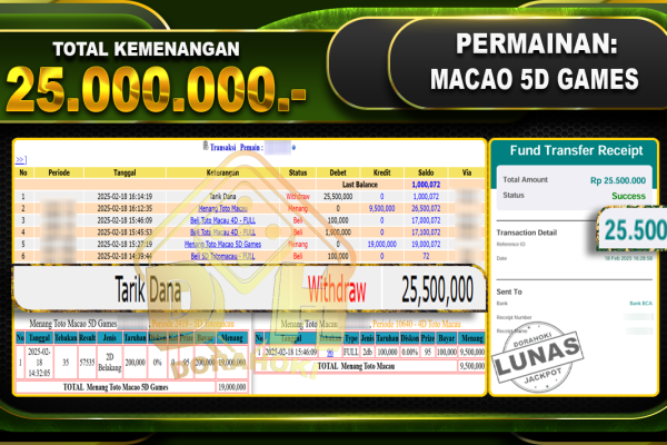 Bukti JP TOTO MACAU – ucapkan selamat kepada user id Ninxxx atas kemenangan di TOTO MACAU dengan total kemenangan Rp.10.900.000,- . Yang pasti nya langsung LUNAS sesuai bukti ya bosku. Dorahoki nih bosku berapapun akan tetap kami bayar lunas ya bosku.