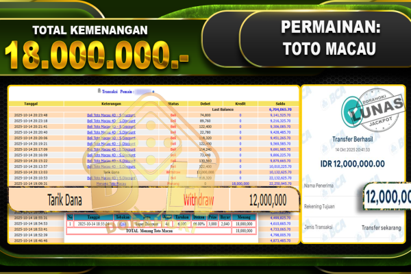 Bukti JP TOGEL Toto Macau 4D – ucapkan selamat kepada user id Aonxxx atas kemenangan di TOGEL Toto Macau 4D dengan total kemenangan Rp.66.500.000,- Yang pasti nya langsung LUNAS sesuai bukti ya bosku. Dorahoki nih bosku berapapun akan tetap kami bayar lunas ya bosku.F