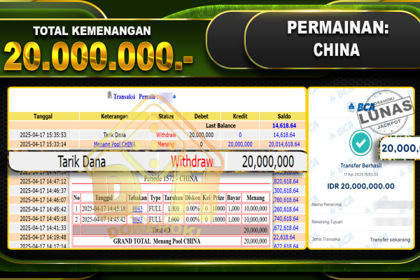 Bukti JP TOGEL TOTO MACAU 4D – ucapkan selamat kepada user id invxxxxx atas kemenangan di TOGEL TOTO MACAU 4D dengan total kemenangan Rp.100,950,500,- Yang pasti nya langsung LUNAS sesuai bukti ya bosku. Dorahoki nih bosku berapapun akan tetap kami bayar lunas ya bosku