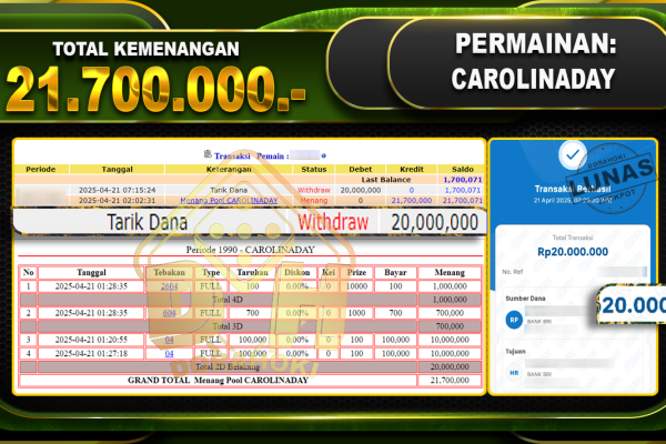 Bukti JP TOGEL JAPAN – ucapkan selamat kepada user id Danaxxx atas kemenangan di TOGEL JAPAN dengan total kemenangan Rp.25.970.000,- . Yang pasti nya langsung LUNAS sesuai bukti ya bosku. Dorahoki nih bosku berapapun akan tetap kami bayar lunas ya bosku. Kami mengucapkan Terima Kasih telah mempercayakan DORAHOKI sebagai Bandar Online pilihan dalam bermain judi online….