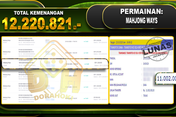 Bukti JP Mahjong Wins 2 – ucapkan selamat kepada user id Jayxxx atas kemenangan di Mahjong Wins 2 dengan total kemenangan Rp.12.220.000,- . Yang pasti nya langsung LUNAS sesuai bukti ya bosku. Dorahoki nih bosku berapapun akan tetap kami bayar lunas ya bosku.