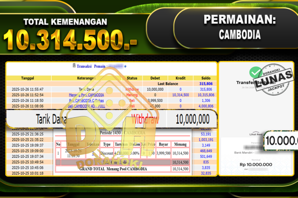 Bukti JP Gates Of Olympus Super Scatter – ucapkan selamat kepada user id Ikoxxx atas kemenangan di Gates Of Olympus Super Scatter dengan total kemenangan Rp.14.586.209,- . Yang pasti nya langsung LUNAS sesuai bukti ya bosku. Dorahoki nih bosku berapapun akan tetap kami bayar lunas ya bosku.