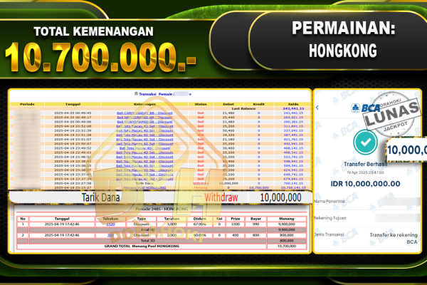 Bukti JP TOGEL KING KONG 4D – ucapkan selamat kepada user id Hasxxx atas kemenangan di TOGEL KING KONG 4D dengan total kemenangan Rp.10.045.000,- . Yang pasti nya langsung LUNAS sesuai bukti ya bosku. Dorahoki nih bosku berapapun akan tetap kami bayar lunas ya bosku. Kami mengucapkan Terima Kasih telah mempercayakan DORAHOKI sebagai Bandar Online…