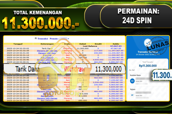 Bukti JP WILD BOUNTY SHOWDOWN – ucapkan selamat kepada user id Depxxx atas kemenangan di WILD BOUNTY SHOWDOWN dengan total kemenangan Rp.21.578.215,- . Yang pasti nya langsung LUNAS sesuai bukti ya bosku. Dorahoki nih bosku berapapun akan tetap kami bayar lunas ya bosku. Kami mengucapkan Terima Kasih telah mempercayakan DORAHOKI sebagai Bandar Online pilihan dalam bermain…