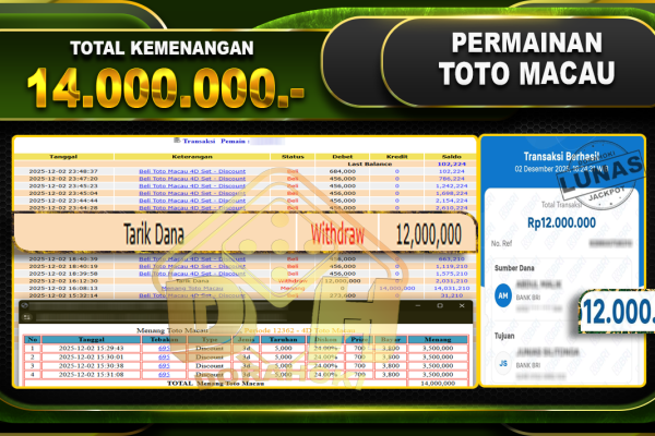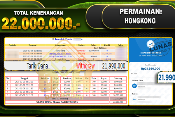 Bukti JP TRIPLE POT GOLD – ucapkan selamat kepada user id DEDxxx atas kemenangan di TRIPLE POT GOLD dengan total kemenangan Rp.11.538.155,- . Yang pasti nya langsung LUNAS sesuai bukti ya bosku. Dorahoki nih bosku berapapun akan tetap kami bayar lunas ya bosku.