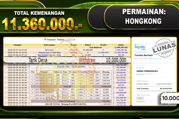 Bukti JP TOGEL TOTO MACAU – ucapkan selamat kepada user id labxxx atas kemenangan di TOGEL TOTO MACAU dengan total kemenangan Rp.145,950,000,- Yang pasti nya langsung LUNAS sesuai bukti ya bosku. Dorahoki nih bosku berapapun akan tetap kami bayar lunas ya bosku