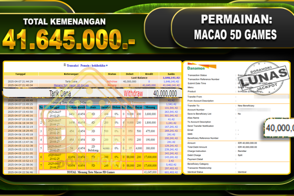 Bukti JP GATES OF OLYMPUS – ucapkan selamat kepada user id Khaxxx atas kemenangan di GATES OF OLYMPUS 1000 dengan total kemenangan Rp.15.062.384,- . Yang pasti nya langsung LUNAS sesuai bukti ya bosku. Dorahoki nih bosku berapapun akan tetap kami bayar lunas ya bosku.